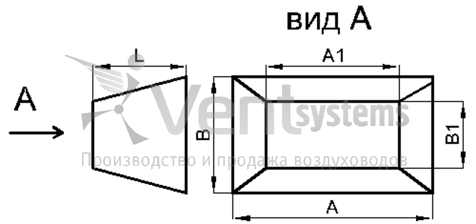 Прямоугольные воздуховоды Фасонные изделия Переход прямоугольное сечение на прямоугольное сечение (центральный, тип 1)