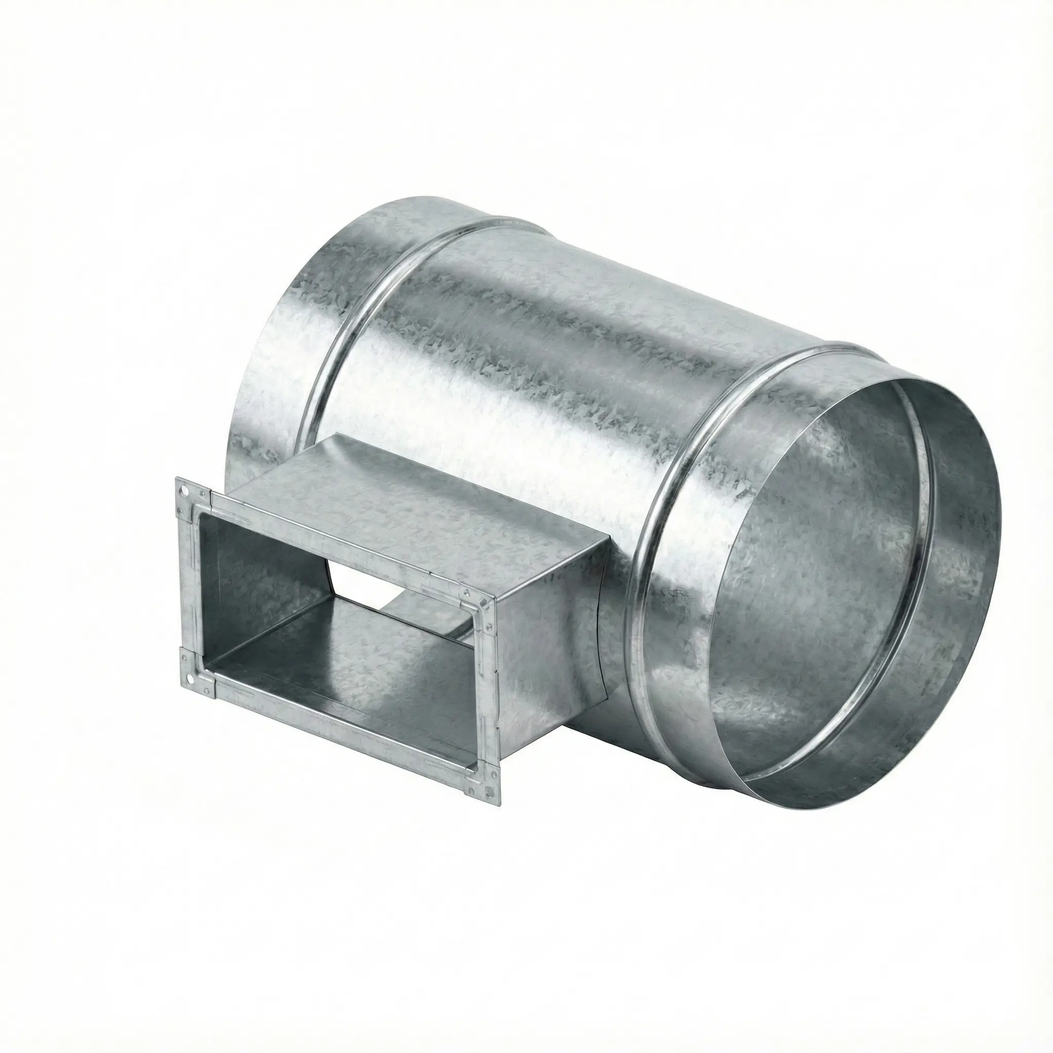 Круглый стальной оцинкованный тройник с прямоугольной врезкой диаметром до 1250 мм