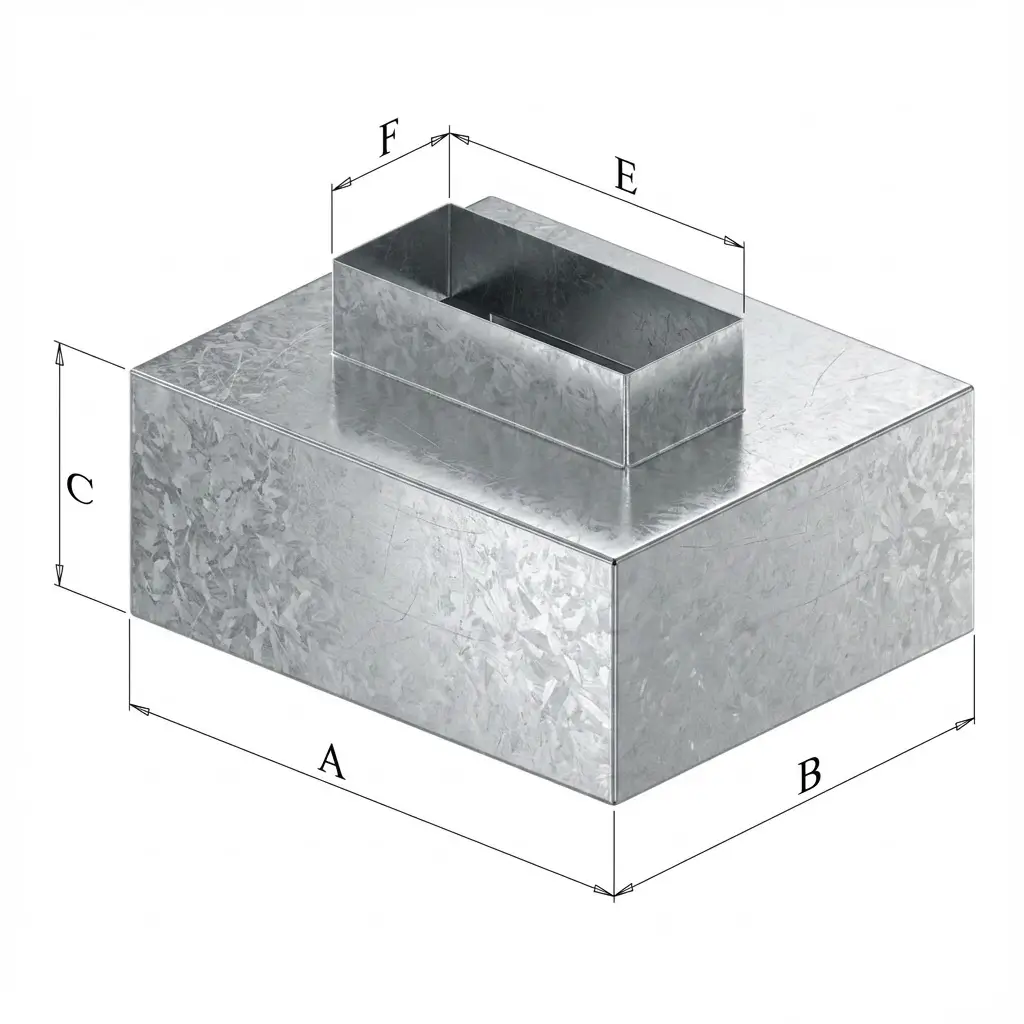 Пленум - воздухозаборное устройство, применяемое для смешивания свежего наружного воздуха с уже циркулирующими в системе потоками. У данного пленума прямоугольная врезка расположена сверху короба.